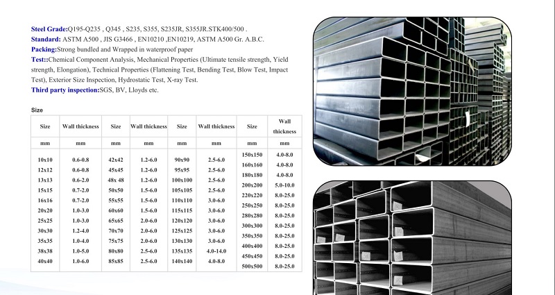 Standard: ASTM A500 , JIS G3466 , EN10210 ,EN10219, ASTM A500 Gr. A.B.C.